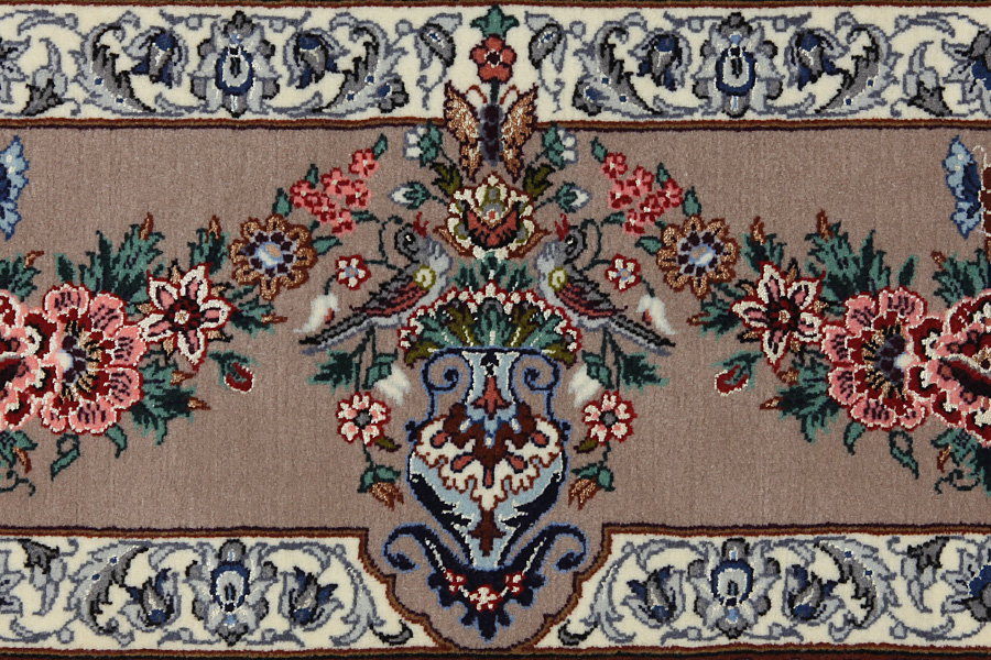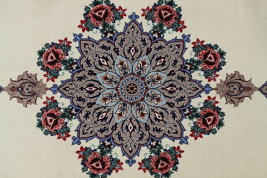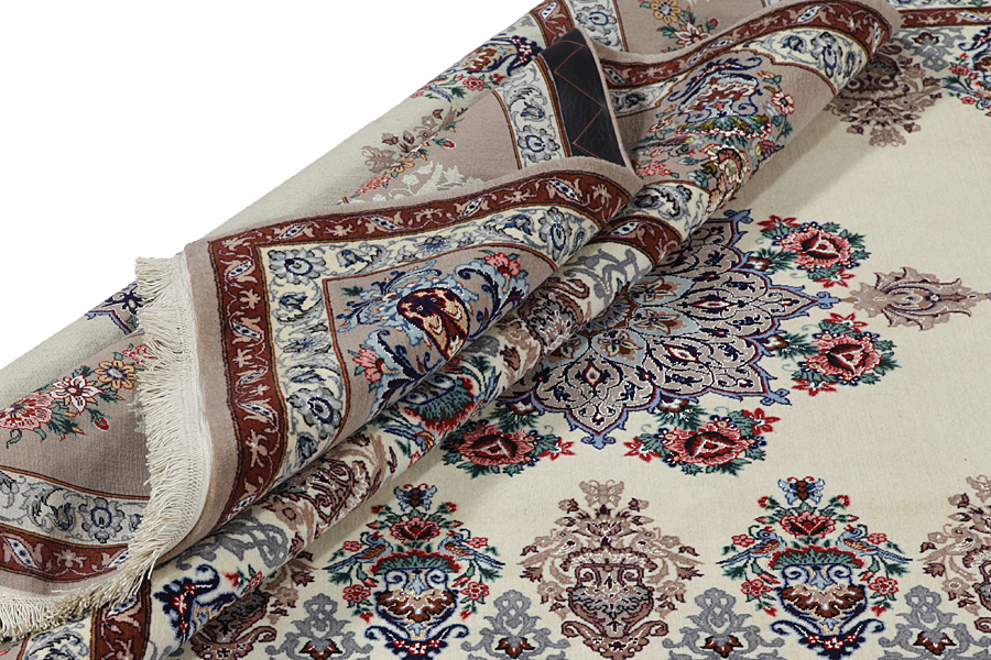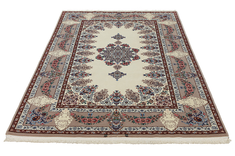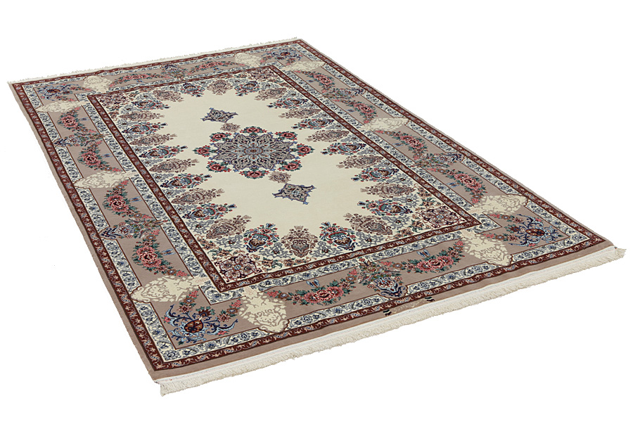 Isfahan Carpets : In the centre of Iran among the Zagros Mountains and the desert, lies the city of Isfahan. Nowadays it is an important industrial city with a population of 1.2 million. The town is an architectural masterpiece. The old carpets of Isfahan in contrast with the newer ones didn't have got a central medallion. The entire surface of the carpet was filled with elaborate spiral flowers and flower palmettes. The newer Isfahan rugs and carpets cannot be compared with those wonderful old specimens which were manufactured exclusively for nobles. But continuing the tradition, today's carpets of Isfahan also have a very fine weave and are clipped very short to reveal their design more clearly. In the weaving they also use silk to highlight certain areas of the design, especially in flowers. The warp is made of silk or cotton.