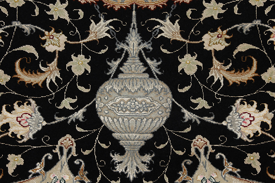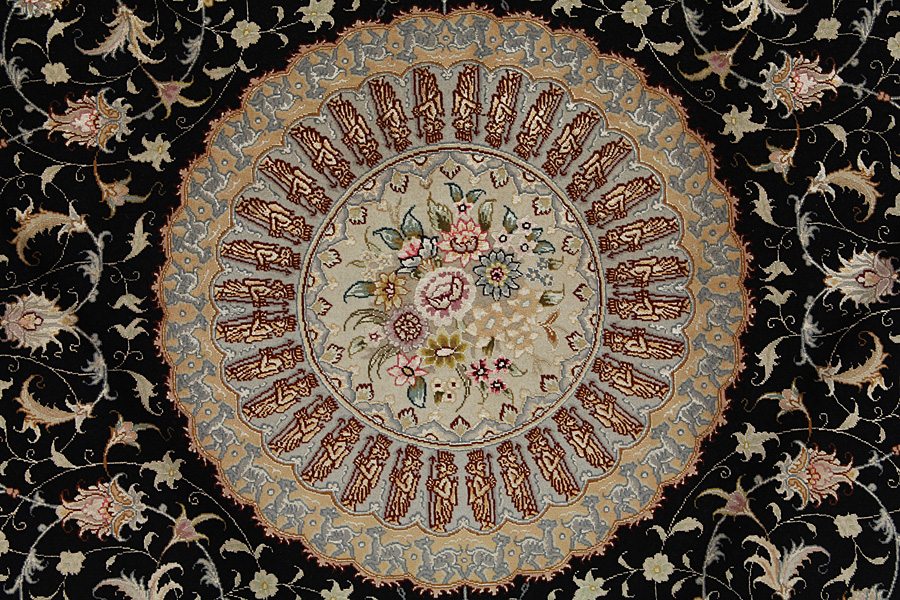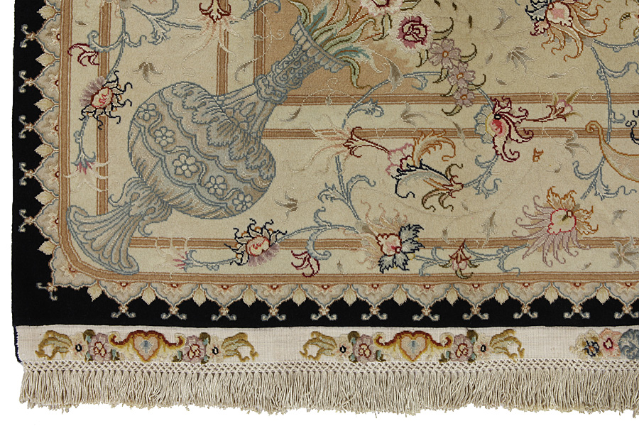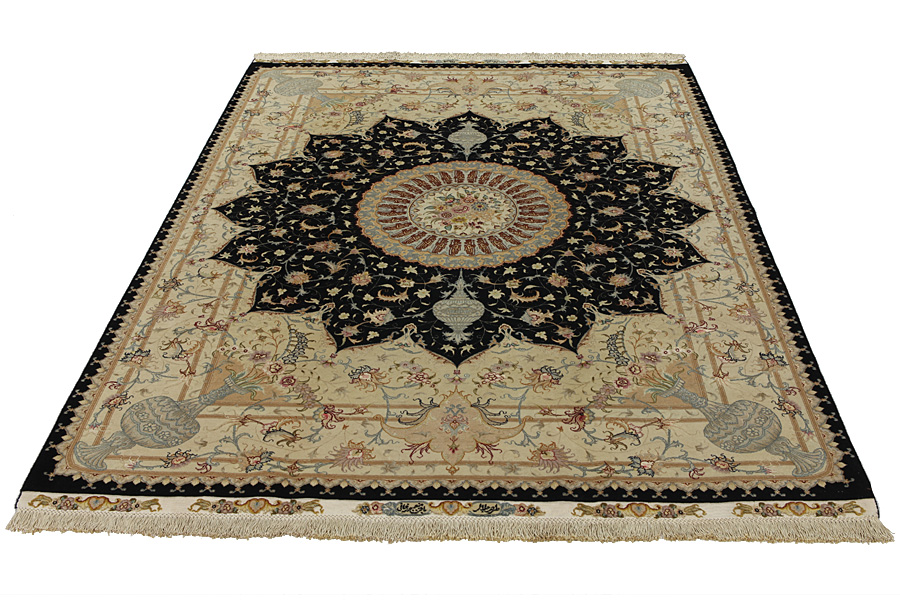 Tabriz Carpets : The city of Tabriz is the capital of Azerbaijan province in Northwestern Iran. Until the end of the caravans era it was the most important centre for trade and carpet weaving. Tabriz supplied the West with masterpieces that were made by renowned and very capable weavers. Their high quality of Tabriz carpets made them renowned in world markets. Many workshops where created where hand-woven carpets with very high density knots and high quality materials where woven. Silk and fine quality wool establish these carpets as very high class. No other city in Persia produced such large quantity or variety of carpets. With or without a medallion, their designs are full of imagination and individuality. Flowers, scenes, stanzas of poems often decorate them. Their predominant colors are beige, blue and red.