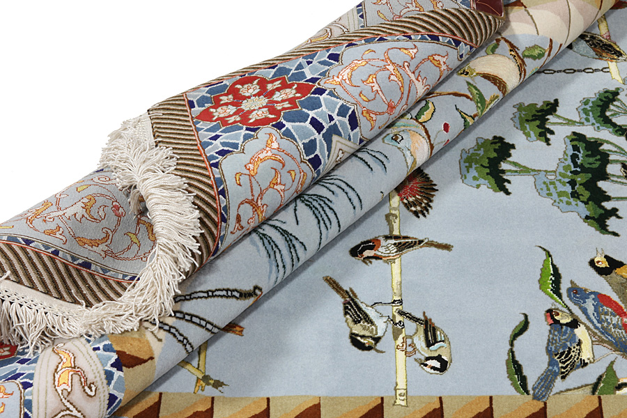 Tabriz Carpets : The city of Tabriz is the capital of Azerbaijan province in Northwestern Iran. Until the end of the caravans era it was the most important centre for trade and carpet weaving. Tabriz supplied the West with masterpieces that were made by renowned and very capable weavers. Their high quality of Tabriz carpets made them renowned in world markets. Many workshops where created where hand-woven carpets with very high density knots and high quality materials where woven. Silk and fine quality wool establish these carpets as very high class. No other city in Persia produced such large quantity or variety of carpets. With or without a medallion, their designs are full of imagination and individuality. Flowers, scenes, stanzas of poems often decorate them. Their predominant colors are beige, blue and red.