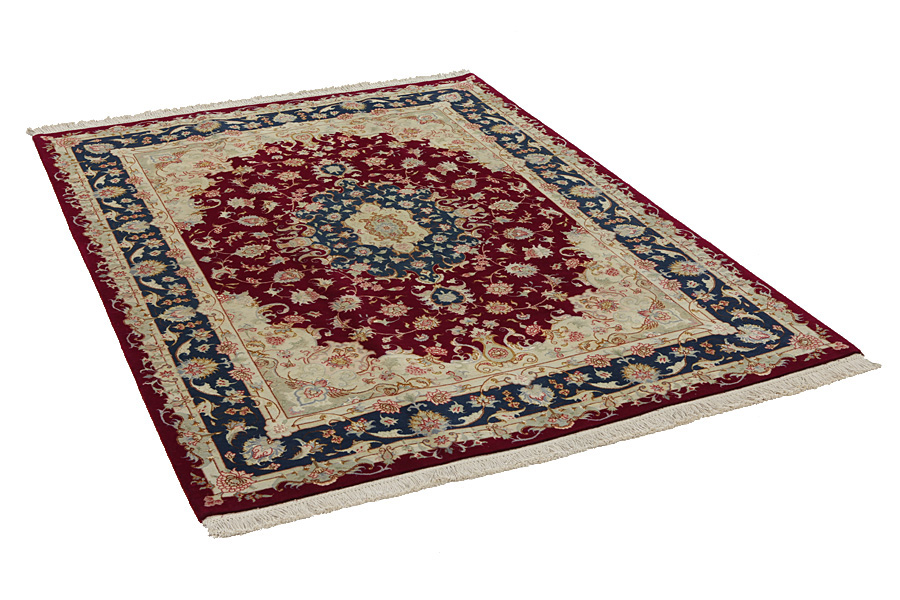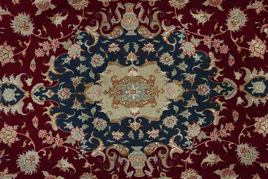 Tabriz Carpets : The city of Tabriz is the capital of Azerbaijan province in Northwestern Iran. Until the end of the caravans era it was the most important centre for trade and carpet weaving. Tabriz supplied the West with masterpieces that were made by renowned and very capable weavers. Their high quality of Tabriz carpets made them renowned in world markets. Many workshops where created where hand-woven carpets with very high density knots and high quality materials where woven. Silk and fine quality wool establish these carpets as very high class. No other city in Persia produced such large quantity or variety of carpets. With or without a medallion, their designs are full of imagination and individuality. Flowers, scenes, stanzas of poems often decorate them. Their predominant colors are beige, blue and red.