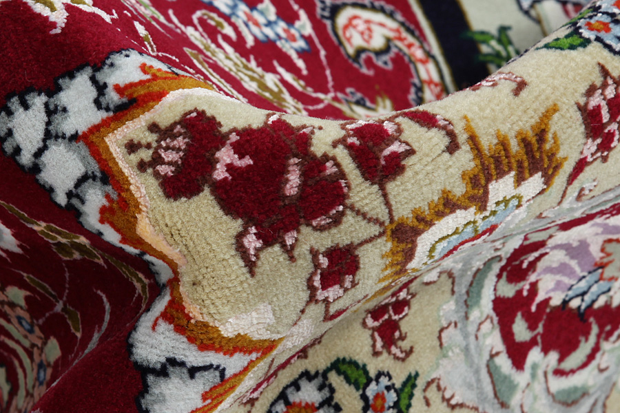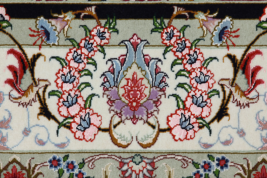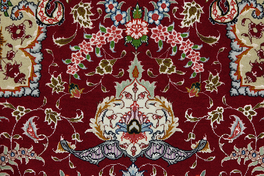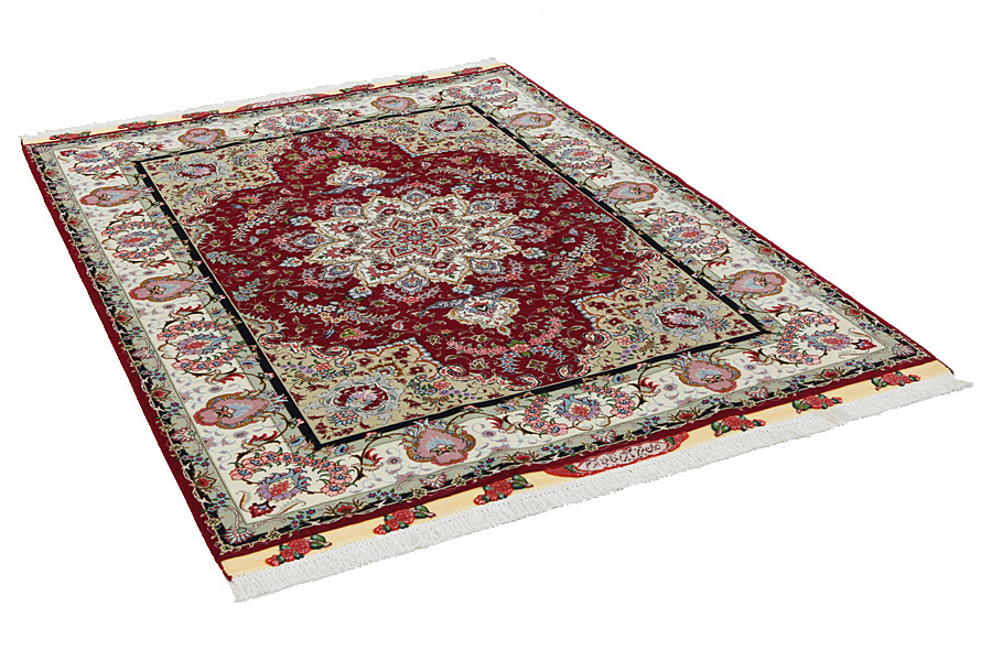 Tabriz Carpets : The city of Tabriz is the capital of Azerbaijan province in Northwestern Iran. Until the end of the caravans era it was the most important centre for trade and carpet weaving. Tabriz supplied the West with masterpieces that were made by renowned and very capable weavers. Their high quality of Tabriz carpets made them renowned in world markets. Many workshops where created where hand-woven carpets with very high density knots and high quality materials where woven. Silk and fine quality wool establish these carpets as very high class. No other city in Persia produced such large quantity or variety of carpets. With or without a medallion, their designs are full of imagination and individuality. Flowers, scenes, stanzas of poems often decorate them. Their predominant colors are beige, blue and red.