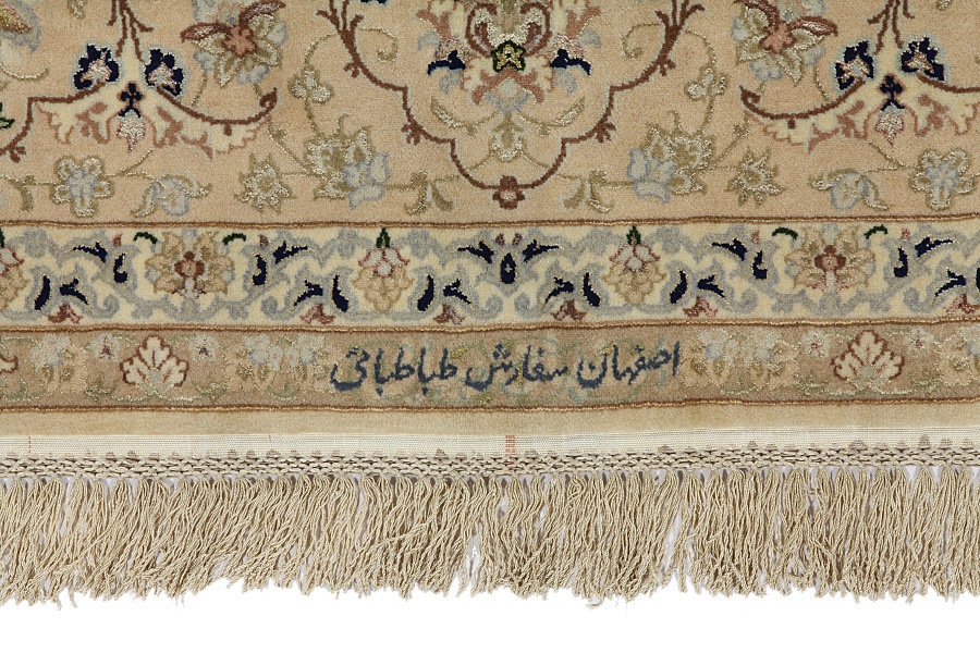 Isfahan Carpets : In the centre of Iran among the Zagros Mountains and the desert, lies the city of Isfahan. Nowadays it is an important industrial city with a population of 1.2 million. The town is an architectural masterpiece. The old carpets of Isfahan in contrast with the newer ones didn't have got a central medallion. The entire surface of the carpet was filled with elaborate spiral flowers and flower palmettes. The newer Isfahan rugs and carpets cannot be compared with those wonderful old specimens which were manufactured exclusively for nobles. But continuing the tradition, today's carpets of Isfahan also have a very fine weave and are clipped very short to reveal their design more clearly. In the weaving they also use silk to highlight certain areas of the design, especially in flowers. The warp is made of silk or cotton.