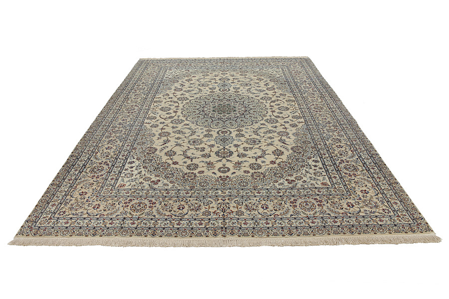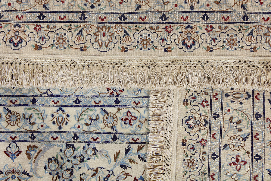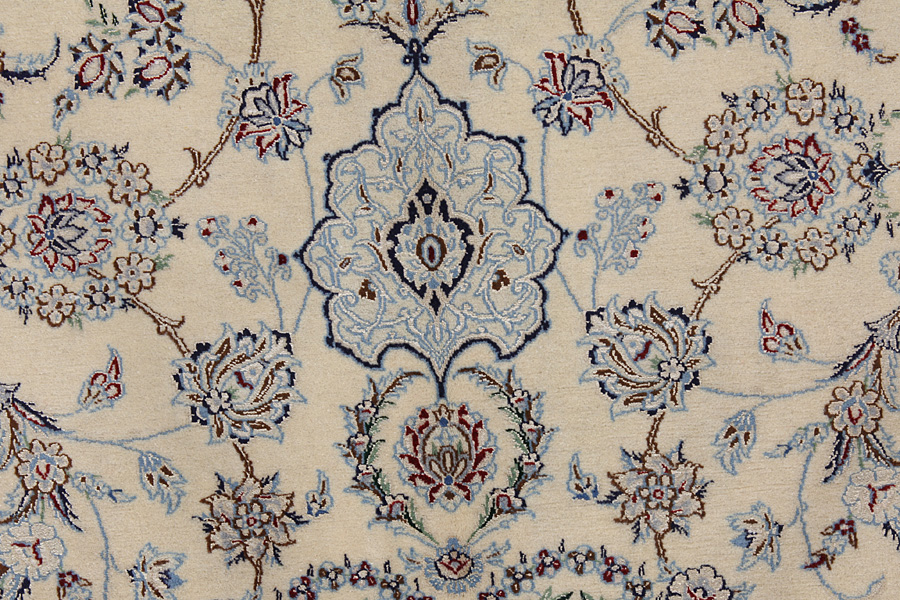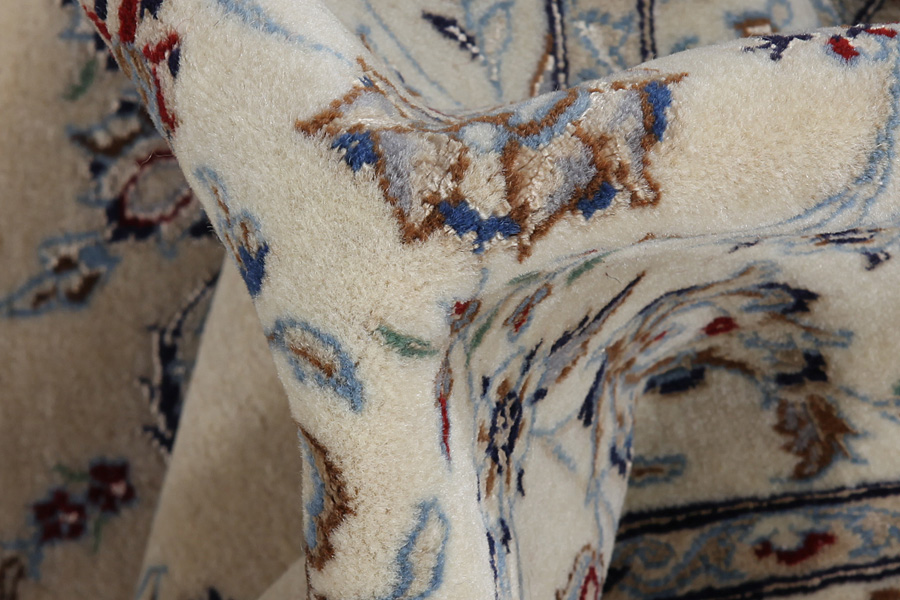 Nain6la Carpets : Nain carpets are often woven in areas around the city Nain, not necessarily in the city itself. The warp in these carpets is typically of cotton. The warp consists of a number of threads that are referred to as "La". Fine woven Nain have 6 threads (6La). Today, the city Nain produces only very stylish 6s of quality La.