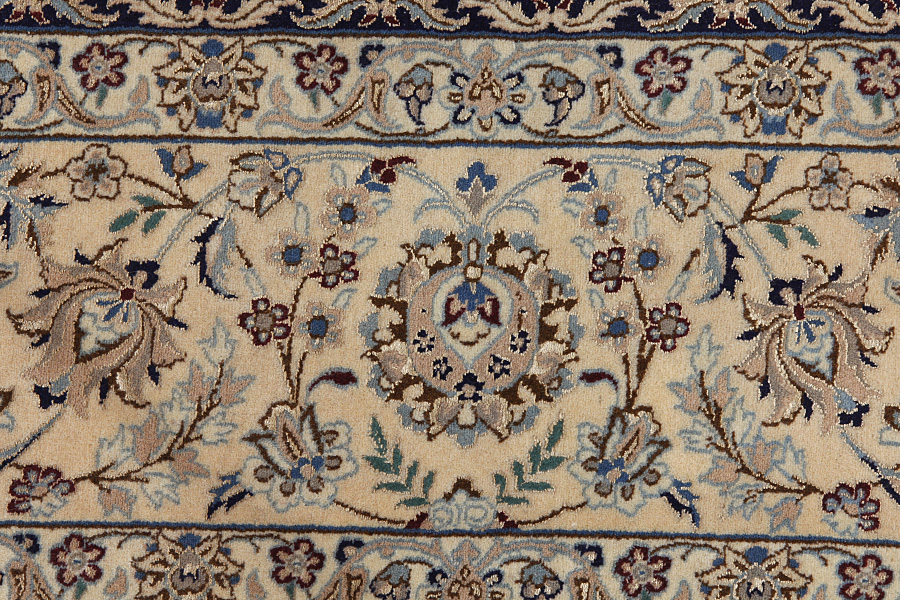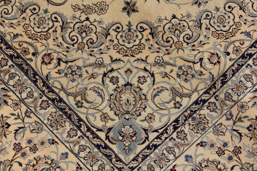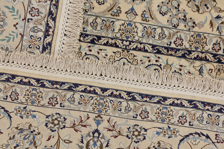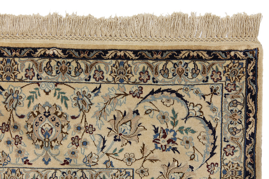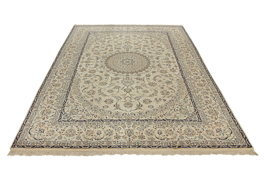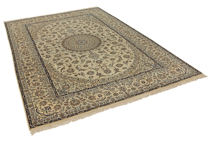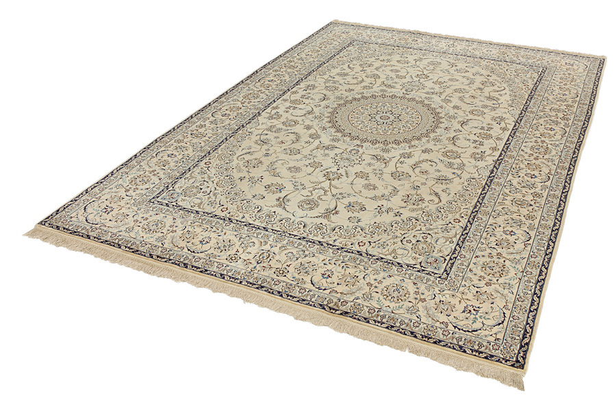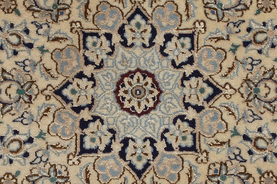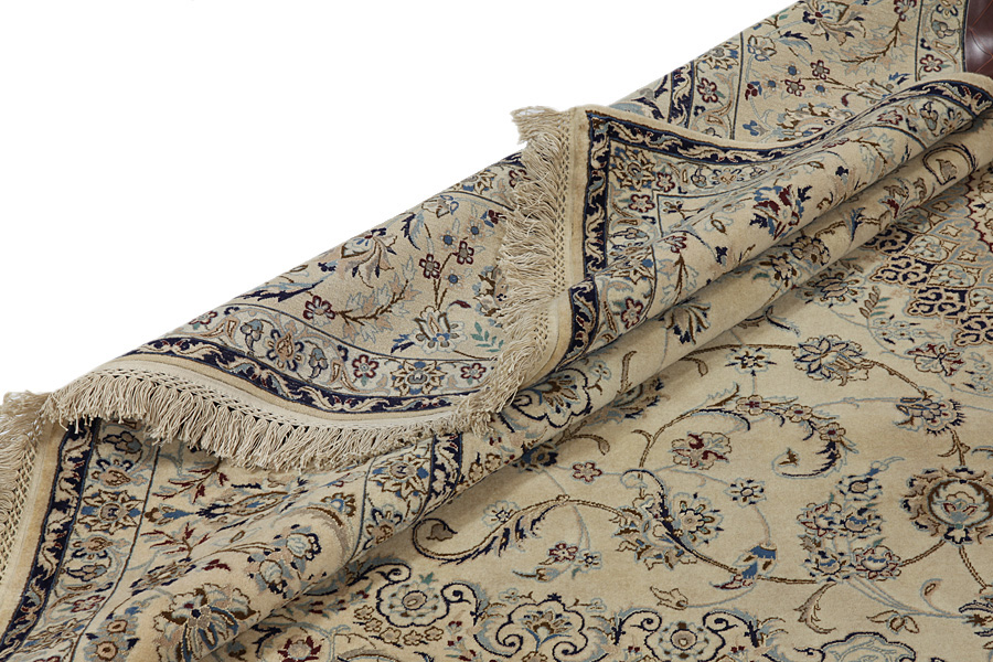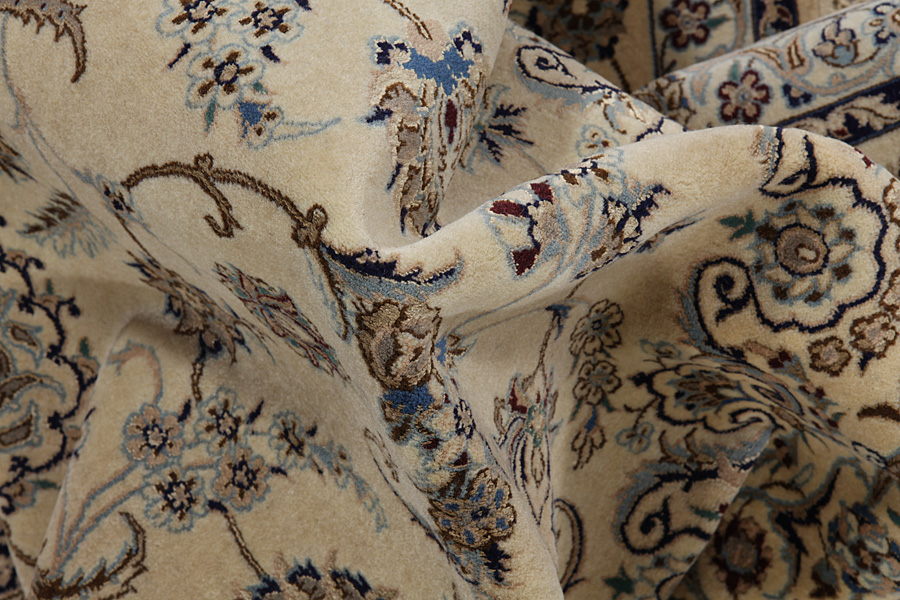 Nain6la Carpets : Nain carpets are often woven in areas around the city Nain, not necessarily in the city itself. The warp in these carpets is typically of cotton. The warp consists of a number of threads that are referred to as "La". Fine woven Nain have 6 threads (6La). Today, the city Nain produces only very stylish 6s of quality La.