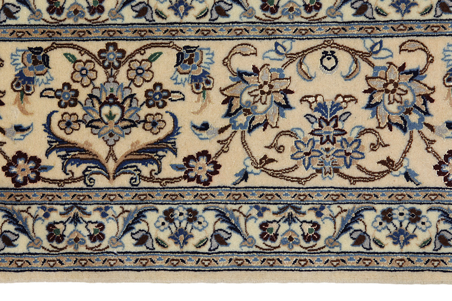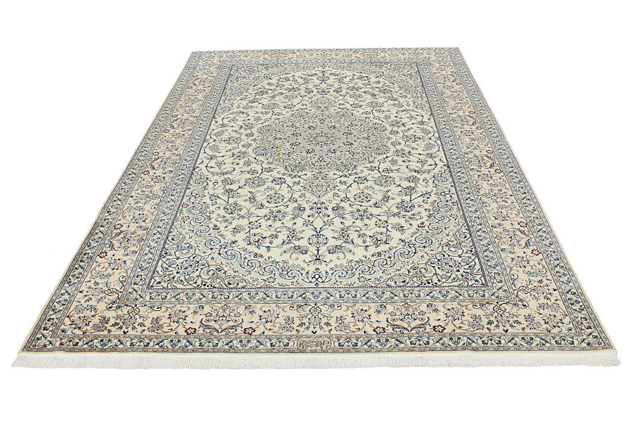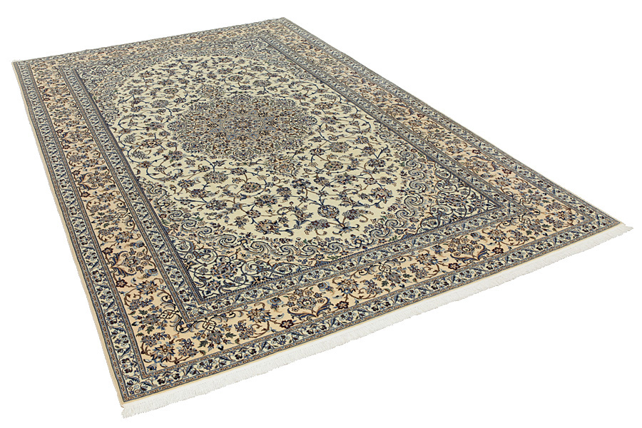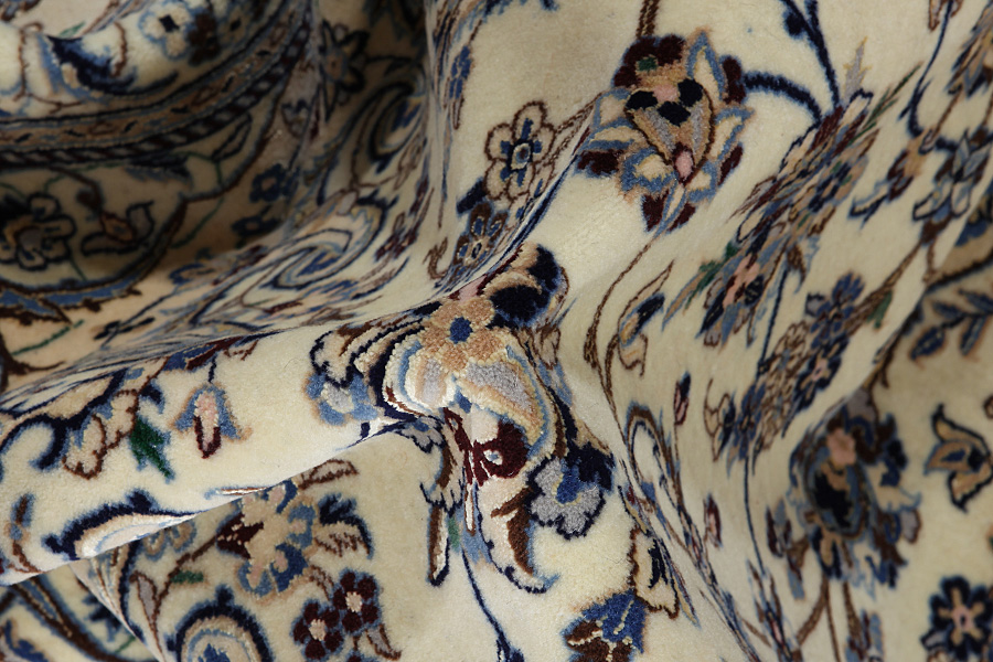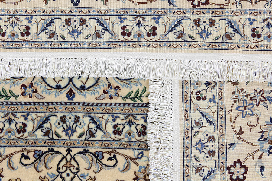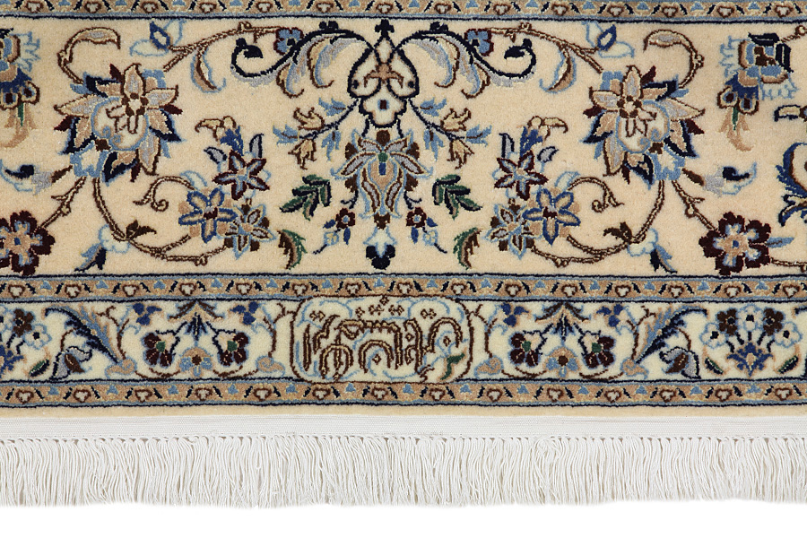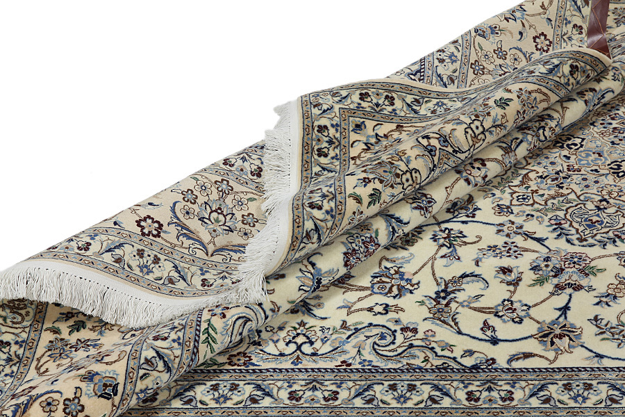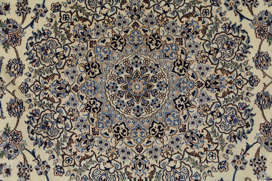 Nain6la Carpets : Nain carpets are often woven in areas around the city Nain, not necessarily in the city itself. The warp in these carpets is typically of cotton. The warp consists of a number of threads that are referred to as "La". Fine woven Nain have 6 threads (6La). Today, the city Nain produces only very stylish 6s of quality La.