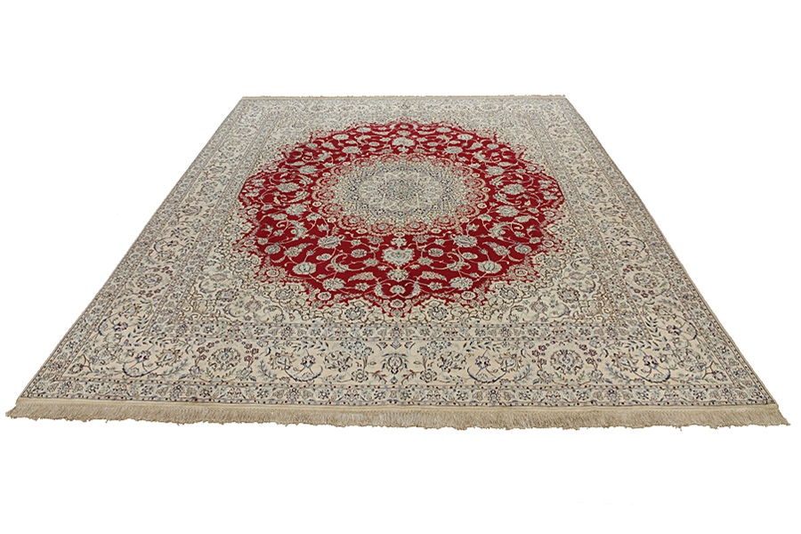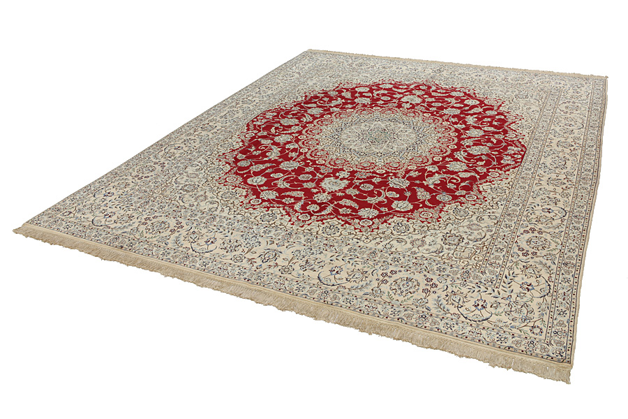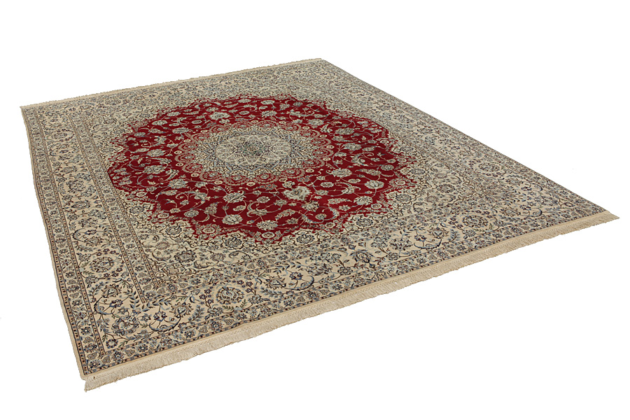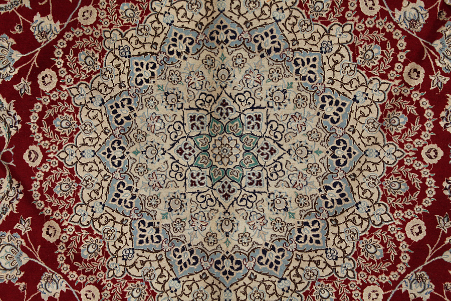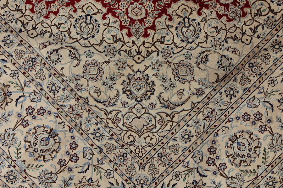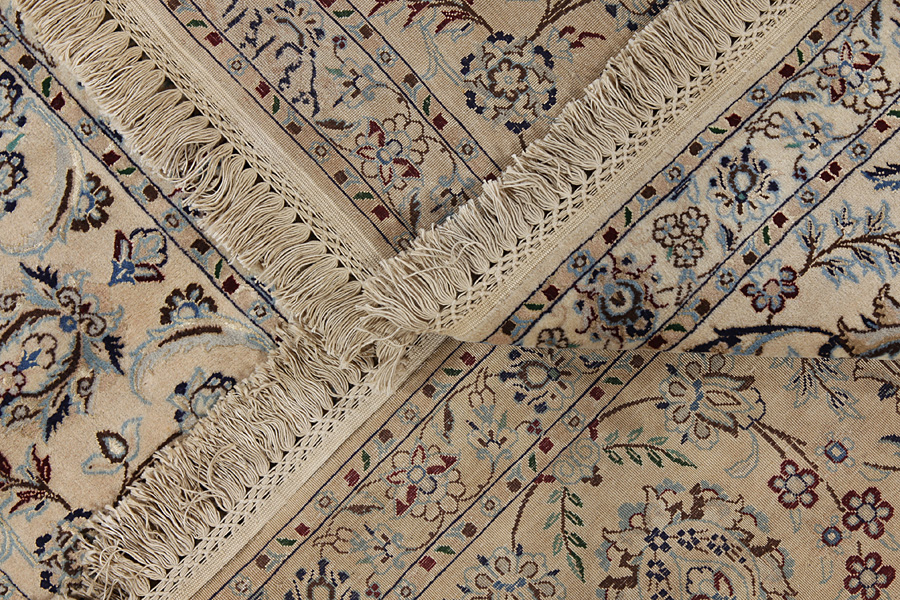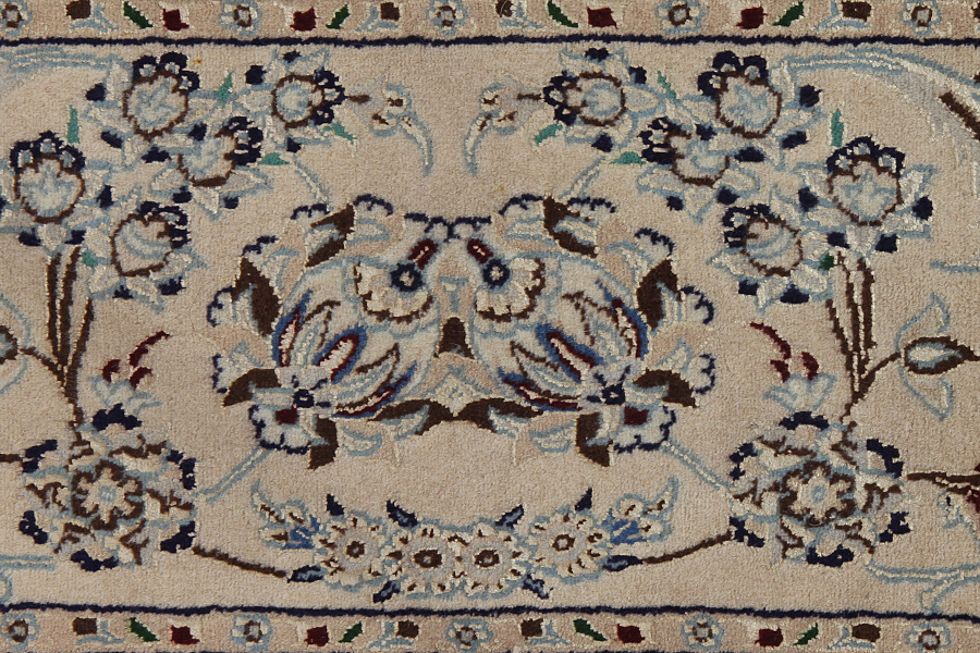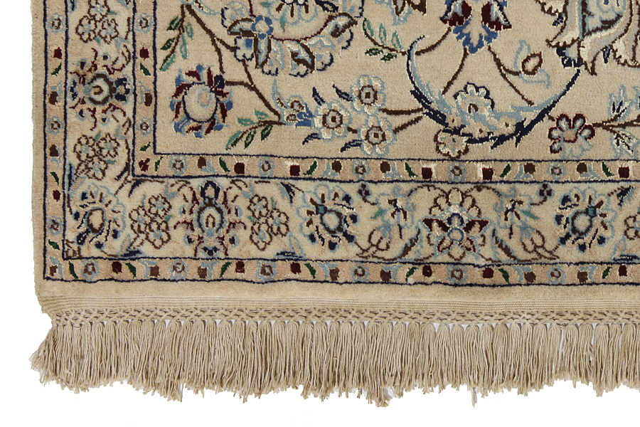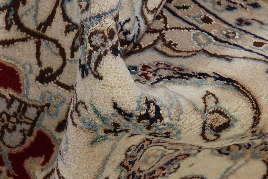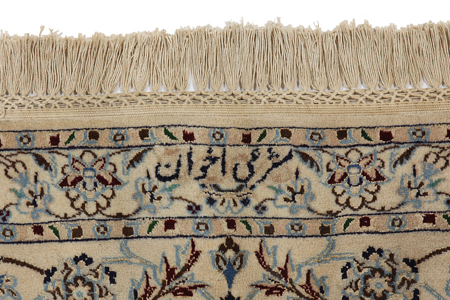 Nain6la Carpets : Nain carpets are often woven in areas around the city Nain, not necessarily in the city itself. The warp in these carpets is typically of cotton. The warp consists of a number of threads that are referred to as "La". Fine woven Nain have 6 threads (6La). Today, the city Nain produces only very stylish 6s of quality La.