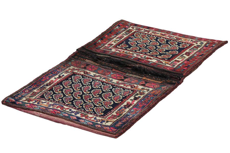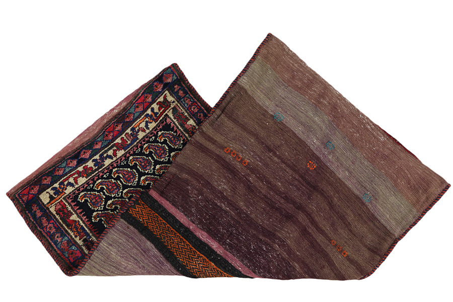 Saddle Bag Carpets : ​Horse saddle bags are made by Nomads for their own use. One can distinguish between the kilim-horse saddle bags and the knotted horse saddle bags. The front side of a knotted horse saddle bag is either knotted like a common carpet with knots or different mixed techniques are used. The side parts are often woven whereas in the middle part different weaving techniques such as kelim or Soumak are applied. The colors horse bags are dyed with are all natural and made by the Nomads themselves. Bags like these once carried everyday necessities for travelers on donkeys or horses. A delightful piece of art that provides a unique oriental atmosphere to your home. Horse saddle bags can be used as a seat cushion, as a floor cushion eg in front of your fireplace or as a wall decoration. Smaller horse saddle bags can be used as a newspaper holder to store newspapers or magazines when slung over a chair or sofa.
