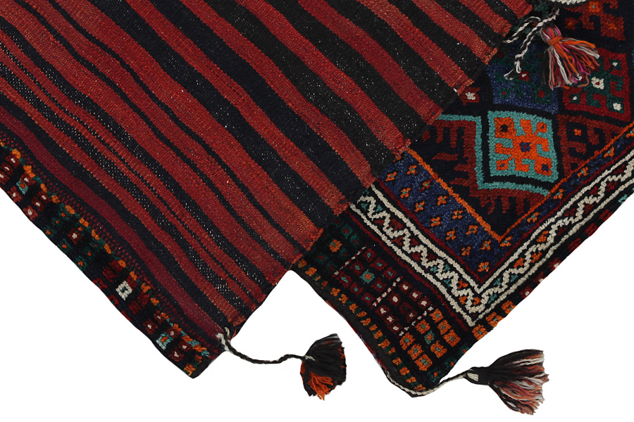 Flat woven at one or both ends of the carpet's width: In some carpets the nomads weave at fringes on a narrow Kilim one or both sides of the width, or they weave them artistically into small braids. It is a technique various weavers use for a greater durability or simply to demonstrate their skill. Examples