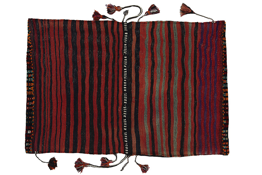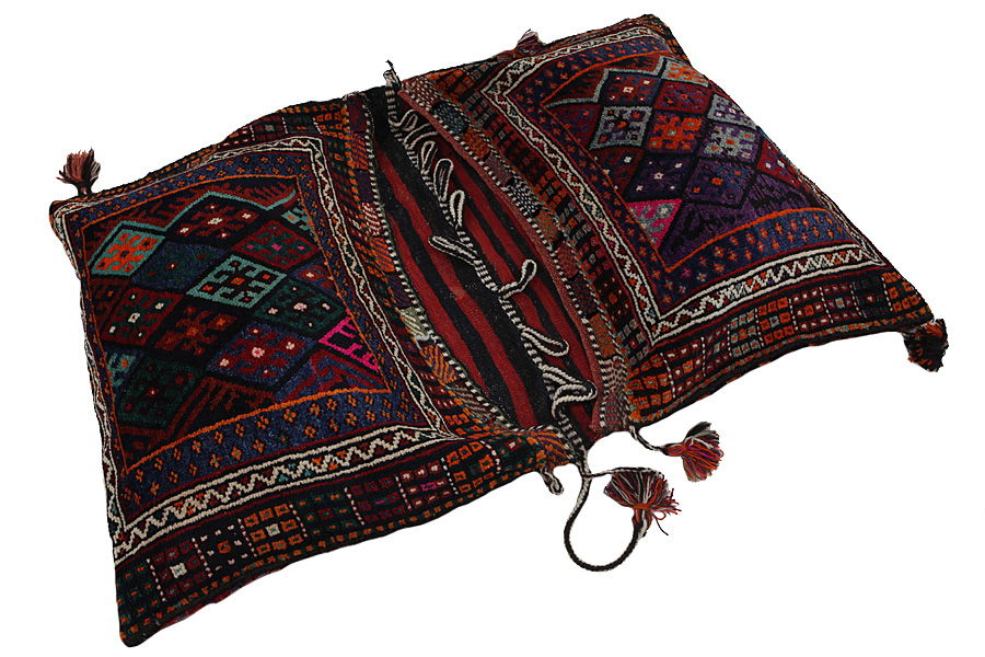 Saddle Bag Carpets : ​Horse saddle bags are made by Nomads for their own use. One can distinguish between the kilim-horse saddle bags and the knotted horse saddle bags. The front side of a knotted horse saddle bag is either knotted like a common carpet with knots or different mixed techniques are used. The side parts are often woven whereas in the middle part different weaving techniques such as kelim or Soumak are applied. The colors horse bags are dyed with are all natural and made by the Nomads themselves. Bags like these once carried everyday necessities for travelers on donkeys or horses. A delightful piece of art that provides a unique oriental atmosphere to your home. Horse saddle bags can be used as a seat cushion, as a floor cushion eg in front of your fireplace or as a wall decoration. Smaller horse saddle bags can be used as a newspaper holder to store newspapers or magazines when slung over a chair or sofa.