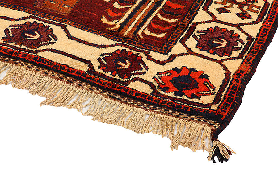 Qashqai Carpets : Qashqai carpets are woven by nomads who live in the mountainous areas of Southwest Persia, the provinces of Fars, Khuzestan, south of Isfahan and around the city Shiraz. Their carpets have a high knot density and a wide variety of designs, usually in deep red and blue colors. They weave carpets, Kilims and decorative textiles (ribbons, bags, etc.), which depict scenes from their lives with various representation of humans, animals, birds, trees and flowers. They also depict historical monuments, mostly from Persepolis.
