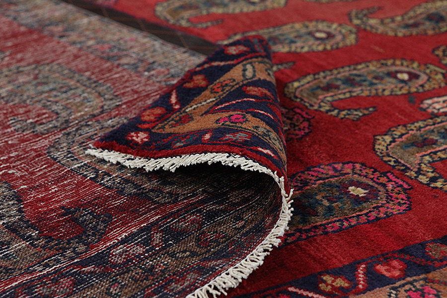 Abrash: Due to the different amount of grease in the wool and the added salt during the process of dyeing, the wool has got a varying colour absorbance. This is not very visible before weaving. During the weaving though, lines of the same colour are formed in the carpet. This is called Abrash (which in Farsi means little cloud) and it shows that the wool was not manufactured using chemical means and marks the naturalness and authenticity of the carpets. Examples