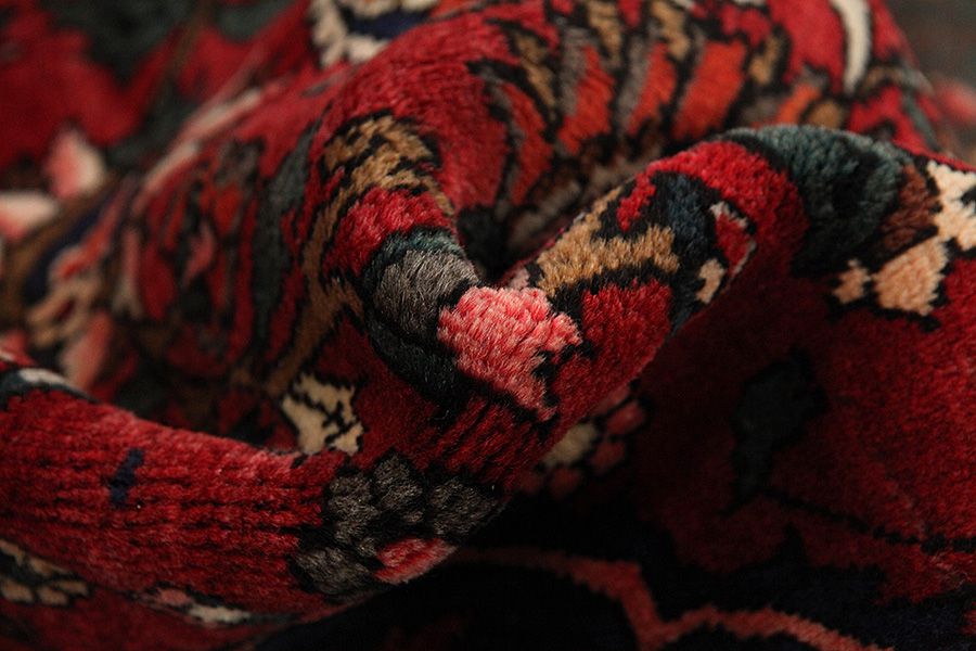 Abrash: Due to the different amount of grease in the wool and the added salt during the process of dyeing, the wool has got a varying colour absorbance. This is not very visible before weaving. During the weaving though, lines of the same colour are formed in the carpet. This is called Abrash (which in Farsi means little cloud) and it shows that the wool was not manufactured using chemical means and marks the naturalness and authenticity of the carpets. Examples