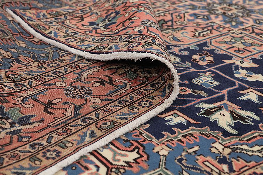 Abrash: Due to the different amount of grease in the wool and the added salt during the process of dyeing, the wool has got a varying colour absorbance. This is not very visible before weaving. During the weaving though, lines of the same colour are formed in the carpet. This is called Abrash (which in Farsi means little cloud) and it shows that the wool was not manufactured using chemical means and marks the naturalness and authenticity of the carpets. Examples