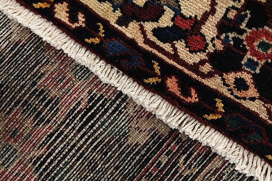 Abrash: Due to the different amount of grease in the wool and the added salt during the process of dyeing, the wool has got a varying colour absorbance. This is not very visible before weaving. During the weaving though, lines of the same colour are formed in the carpet. This is called Abrash (which in Farsi means little cloud) and it shows that the wool was not manufactured using chemical means and marks the naturalness and authenticity of the carpets. Examples