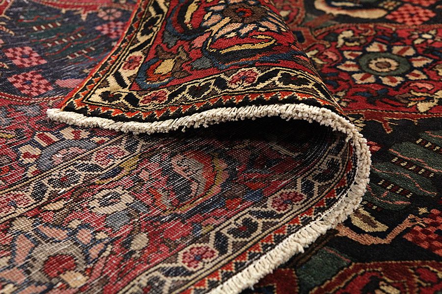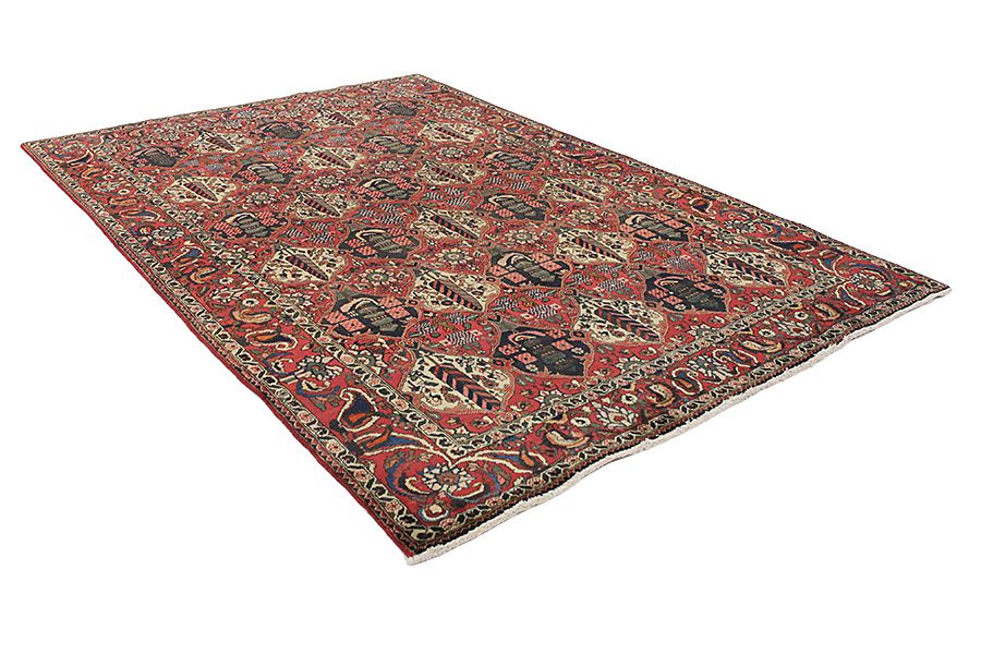 Bakhtiari Carpets : In the mountains Zagros, west of the city of Isfahan, around the town of Shahr-e-Kurd, live the nomads Bakhtiar. Their carpets are known for the design with various repeating squares in which flowers and animals are depicted. For this reason the design is called "garden"(Khesti). Their carpets are very durable with a dense weave and very good quality Persian wool coming from sheep grazing at a high altitude. The best Bakhtiar rugs and carpets with highest knot density are often called Bibibaff. Also in many designs we see influences from Isfahan carpets. (Boldaji - Feridan - Saman).