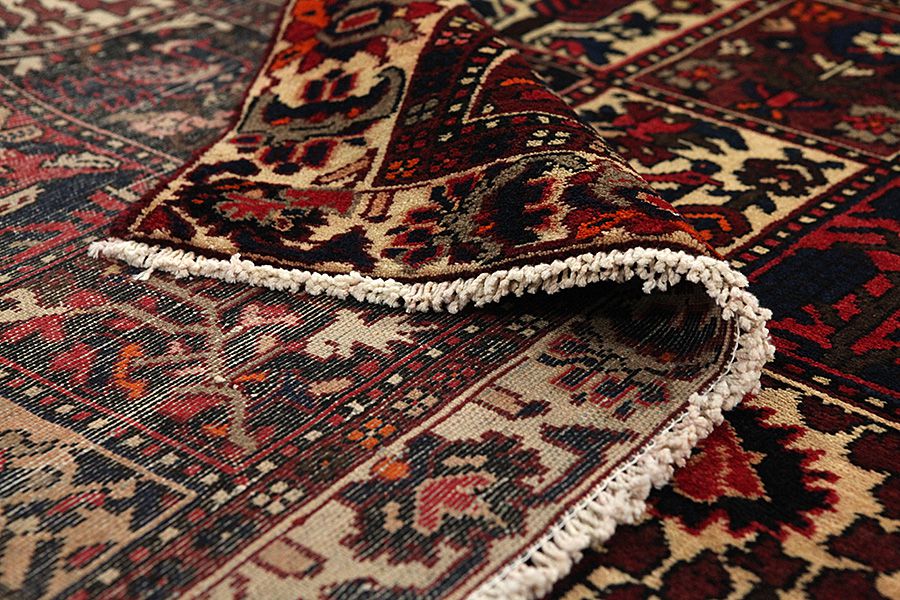 Bakhtiari Carpets : In the mountains Zagros, west of the city of Isfahan, around the town of Shahr-e-Kurd, live the nomads Bakhtiar. Their carpets are known for the design with various repeating squares in which flowers and animals are depicted. For this reason the design is called "garden"(Khesti). Their carpets are very durable with a dense weave and very good quality Persian wool coming from sheep grazing at a high altitude. The best Bakhtiar rugs and carpets with highest knot density are often called Bibibaff. Also in many designs we see influences from Isfahan carpets. (Boldaji - Feridan - Saman).